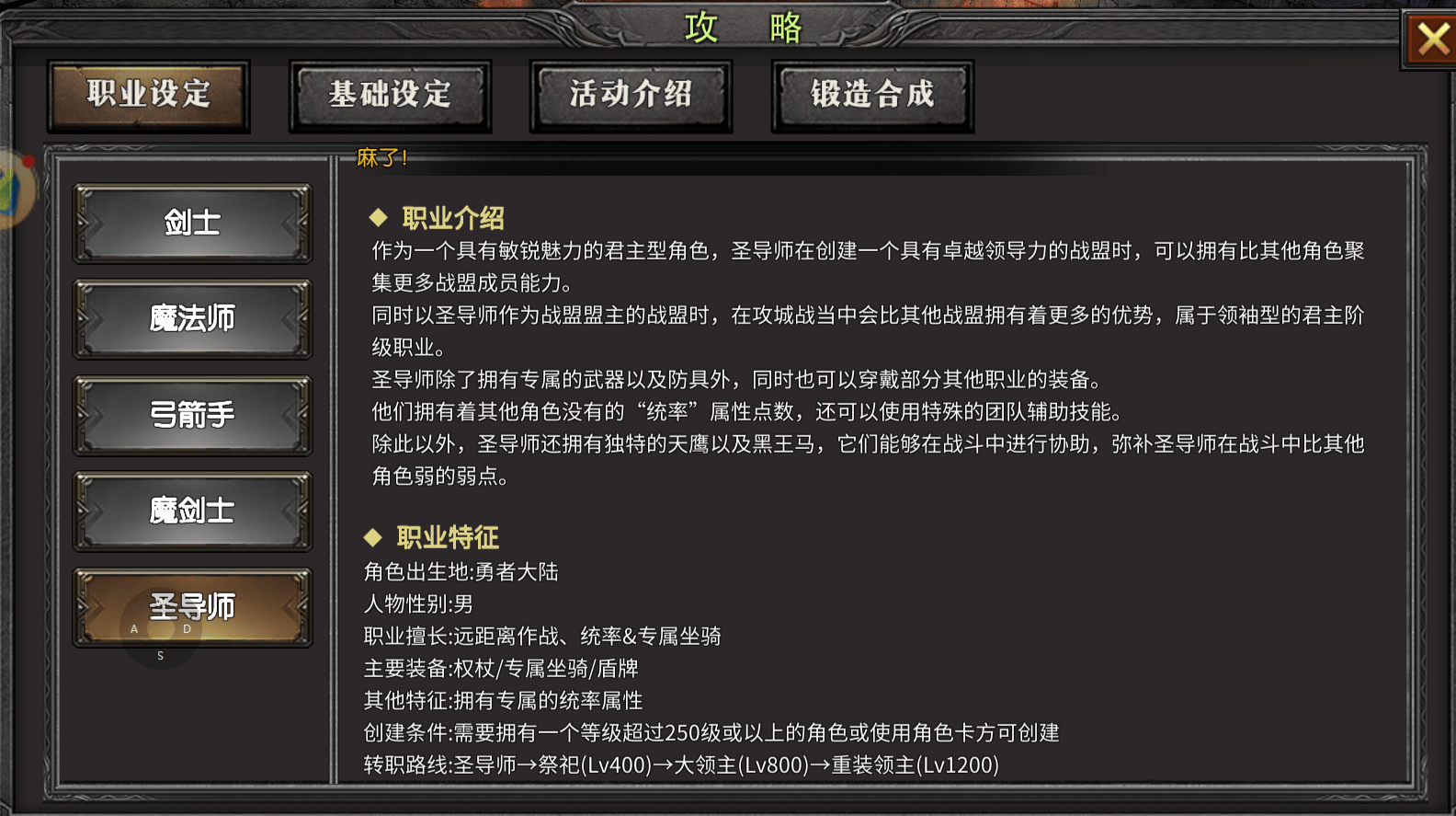 1. 战士:新手首选的近战壁垒。高血量、高防御的属性设定使其容错率极高,操作难度低,堪称新手开荒的“天选之子”。核心技能“狂暴斩击”可对前方扇形范围造成巨额伤害,“雷霆裂闪”还能实现群体眩晕控制,无论是正面硬刚小怪还是团队副本扛伤都游刃有余。加点建议前期70%点力量、30%点敏捷,保证输出与命中,后期补加体力进一步提升生存能力,是团队攻坚的核心坦度担当。