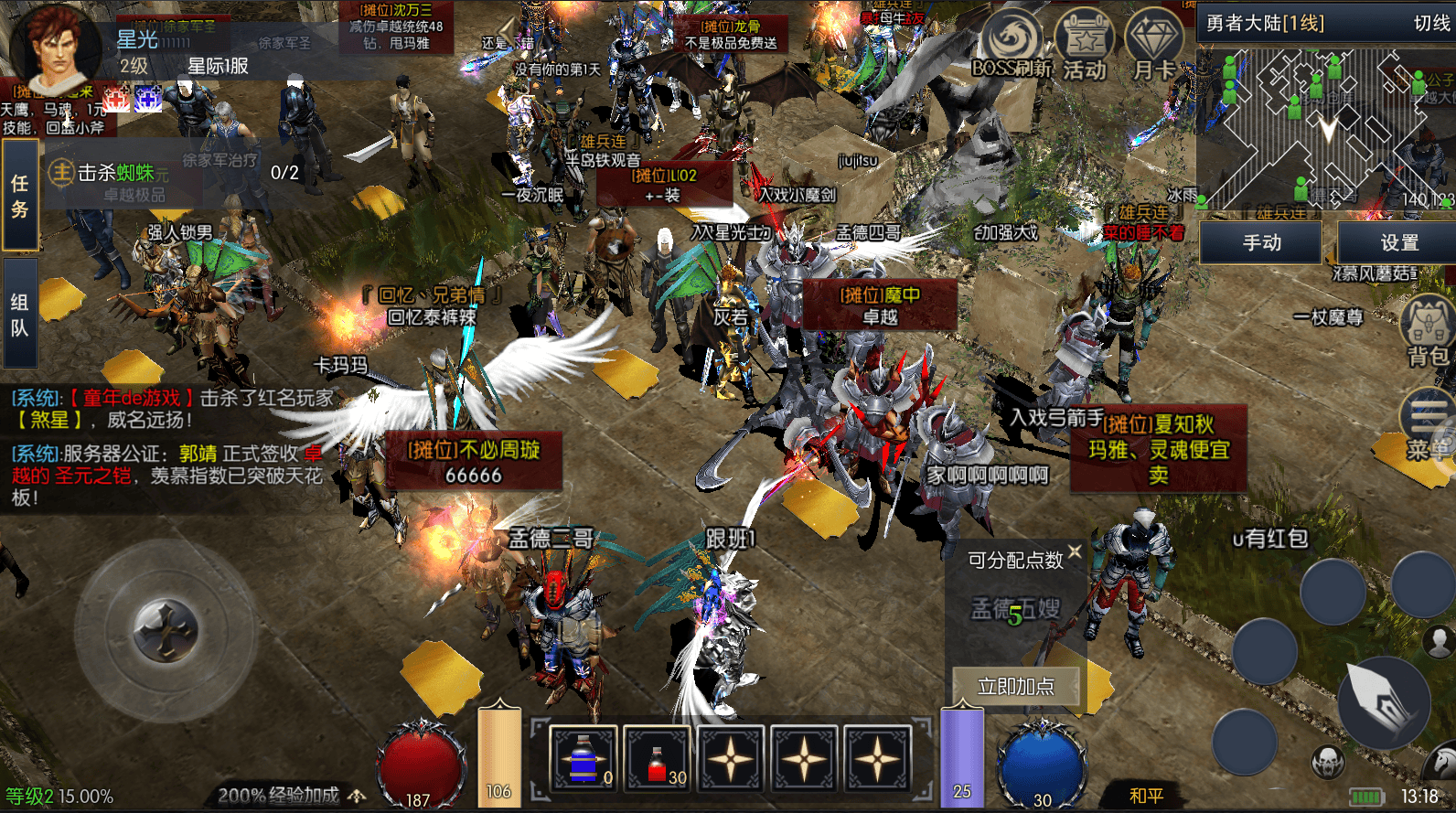 2. 资源配置与风险规避:平民玩家开局可购买月卡获取持续资源产出与挂机特权;钻石优先兑换王者碎片、突破石等稀缺道具,避免用于抽奖等概率性玩法;金币重点留存,用于转职任务与装备强化。多余非绑定道具可通过勇者大陆摆摊系统交易,换取基础装备与升级材料。新手需规避两大风险:属性点道具建议150级一转后使用,实现核心属性精准补充;避免恶意PK累积罪恶值,红名状态被击杀后将100%掉落防具或武器。尽早加入活跃公会,参与公会副本、公会战可获取专属奖励,高难度副本通关需依托公会成员协同协作。