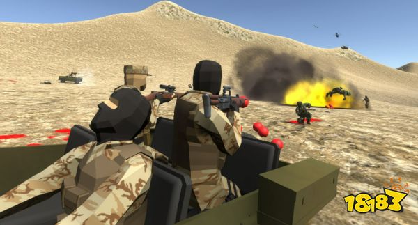 这款战争射击类游戏里有很多武器供你挑选,你可以使用火箭弹或者迫击炮这样的热武器进行战斗,游戏世界里有许多现代化载具,你可以驾驶载具载上NPC队友冲锋陷阵,体验真实的战场带给你的刺激感。这款战争类游戏里有很多DIY的元素,你可以在内置菜单里自己设置参战的人数,或者获得胜利的方式。