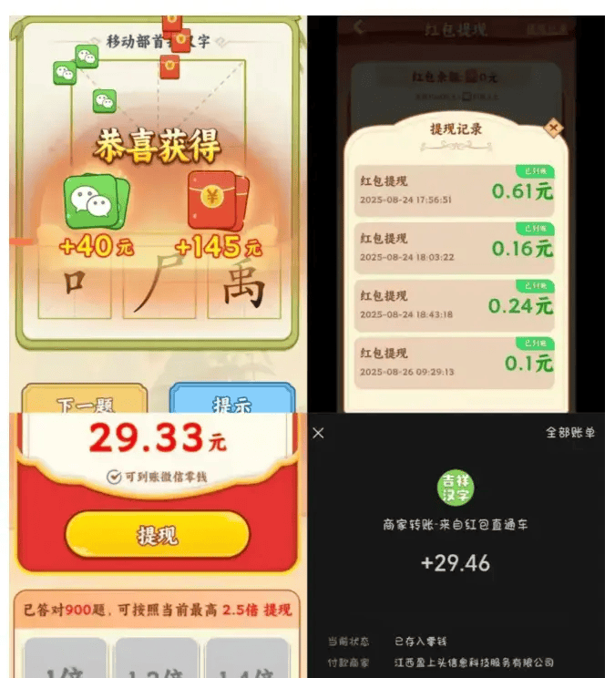 它把汉字拼写、添笔画这些玩法跟红包奖励结合起来,玩着玩着还能认几个生僻字。